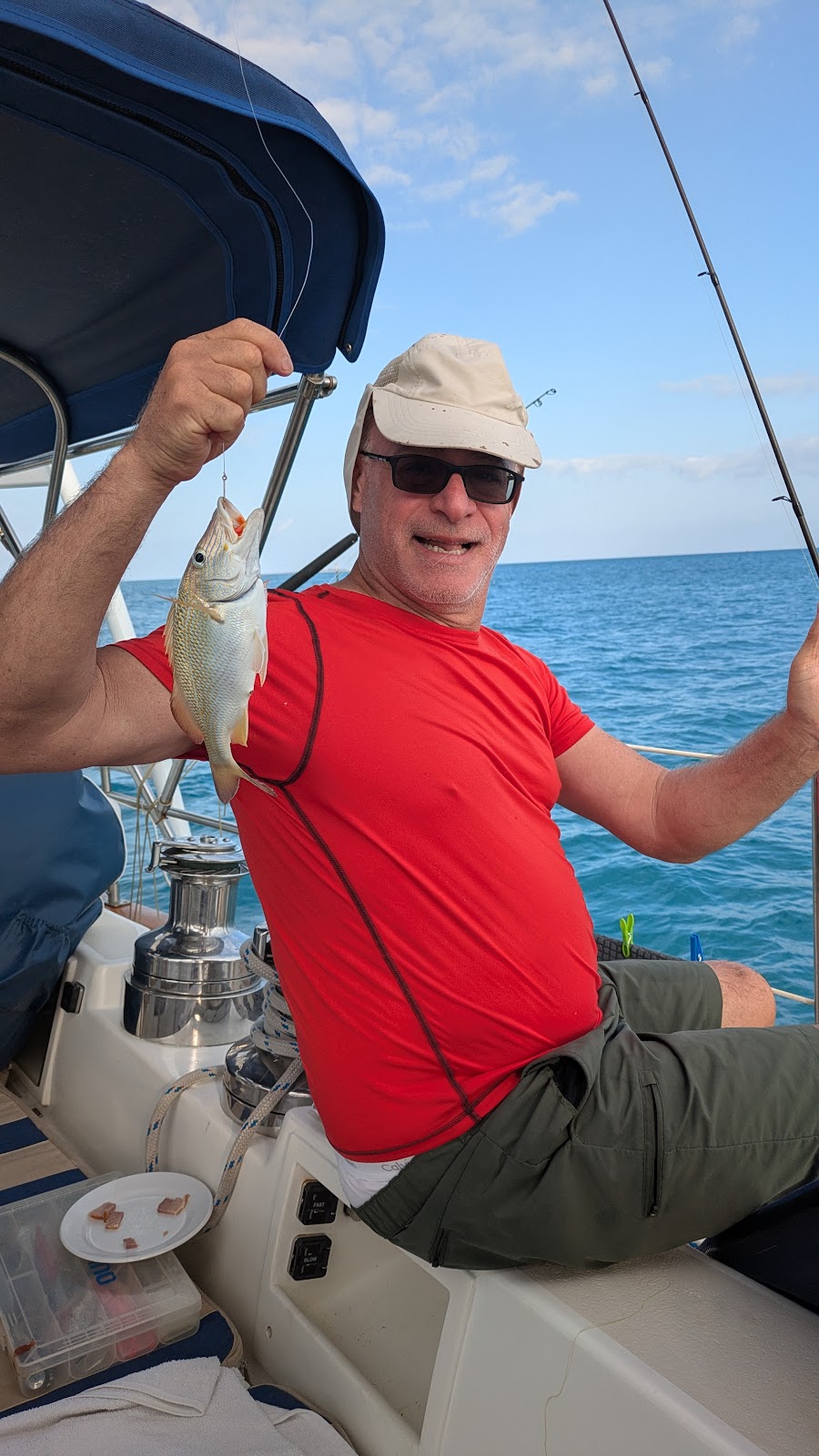 Our next visitor was our friend Roberto who is also our personal chef. I was excited to brag about shipping in my own personal chef for the weekend and Roberto wanted to relax and enjoy a bit of fishing. In addition to bringing his culinary skills and a ton of fresh food, Roberto also brought us a new dinghy engine that he picked up in Orlando. Funny story. Our engine died on us and to get the one we wanted in Key West was going to take at least 7-10 days. We started looking elsewhere to get one sooner and low and behold, a dealer near his house in Orlando had in stock the engine we wanted. So, in addition to packing up some favorites of ours from the restaurant, he traveled down to Key West with our new motor. With this dockside delivery we were back in business and stocked with food!